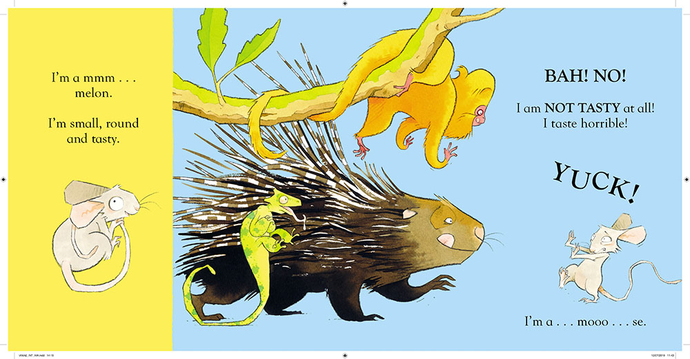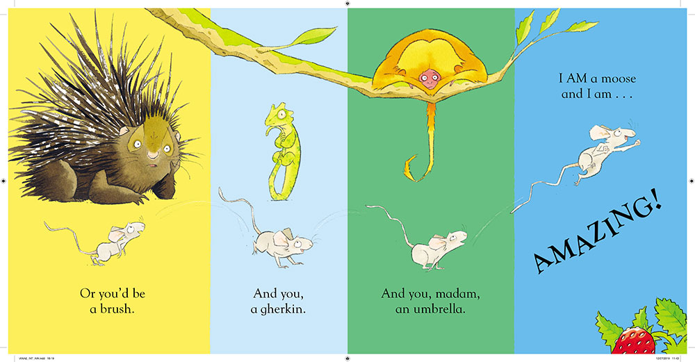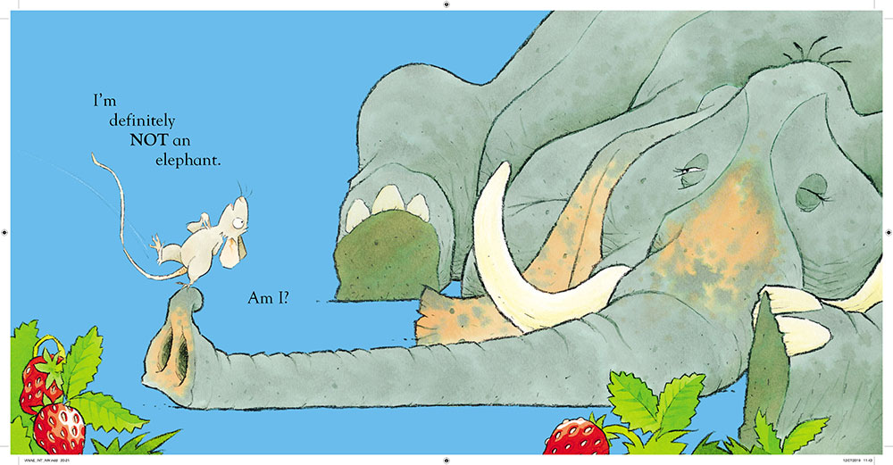 This laugh-out-loud story is about a bold and imaginative Mouse who is accused of being an elephant by a gecko. Despite having a pointy nose and flappy ears, Mouse is definitely not an elephant - but could Mouse be an owl, a sheep, a yak, or a cow? Mouse persuades the others that it's what is on the inside that counts - and maybe Mouse is actually a Moose?