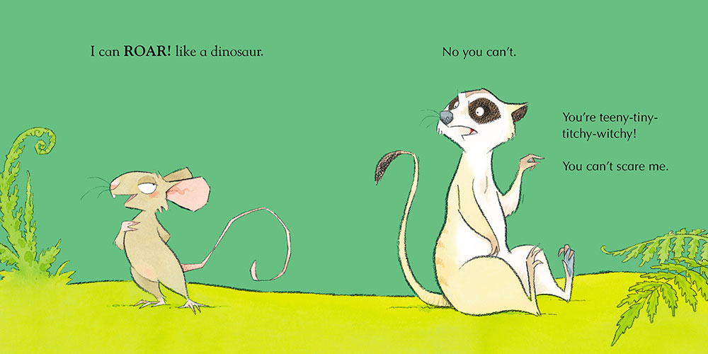 Mouse might be teeny-tiny-titchy-witchy, but it's determined to show the other animals that anyone can roar like a dinosaur. With the help of it's trusty "How to Roar Like a Dinosaur" book, Mouse gets to work getting it's dino-roar back, much to the bemusement of the chattering meerkat, the grunting warthog and the ruk-ruking chameleon...