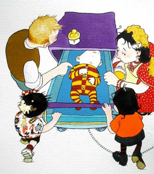 Dad has got the baby to sleep at last. All is quiet - until...buzzzzzzzzzzzzzzzz a fly appears. He rolls up a paper and swipes at it. Whack! First Mum, then Sam and then Ellie join the noisy chase - but will they wake the baby?