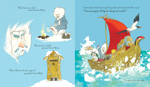 In Coldpole, everyone loves to receive a hellojar. Just open the lid to hear its frozen message, news, good wishes or simply hello! But when little Kiko and her polar bear, Tunnu, set off to deliver Hellojars to Uncle Ukluk in far-off Hotpole, the animals they meet on the way have very different uses in mind for the precious hellojars...