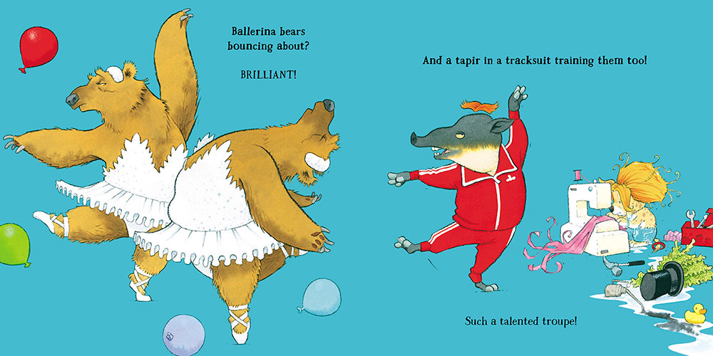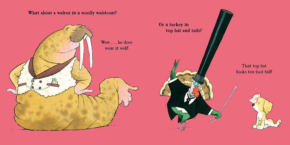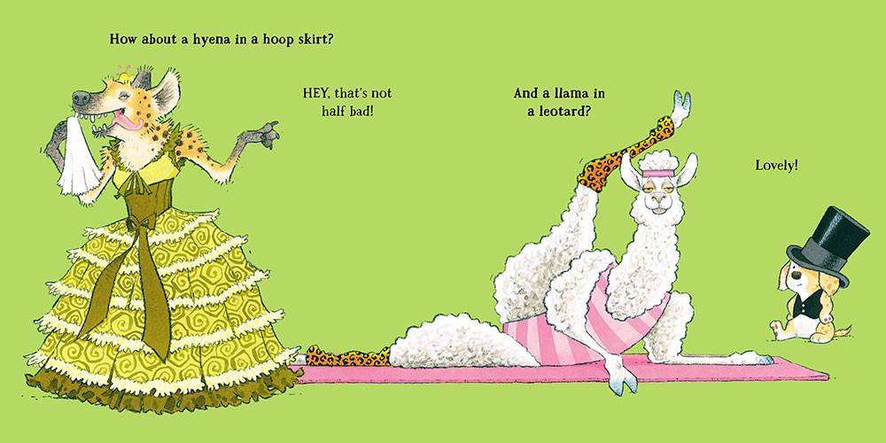 Donkeys in dungarees, walruses in woolly waistcoats, hyenas in hoop skirts . .