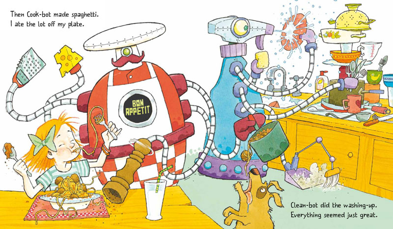 I thought they must be joking. But dad switched the robots on. Mum said, "They're the latest models. What could possibly go wrong?"