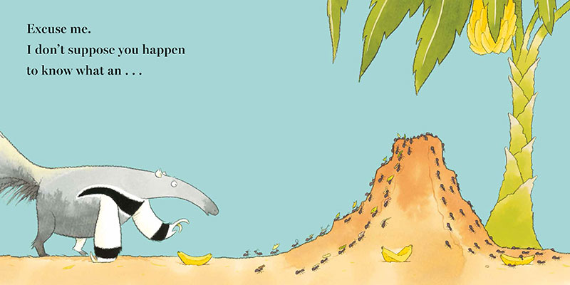 Anteater wakes up hungry... but there's something he can't quite remember - just what does an anteater eat? All the jungle animals have their own ideas but maybe the answer is right in front of him...