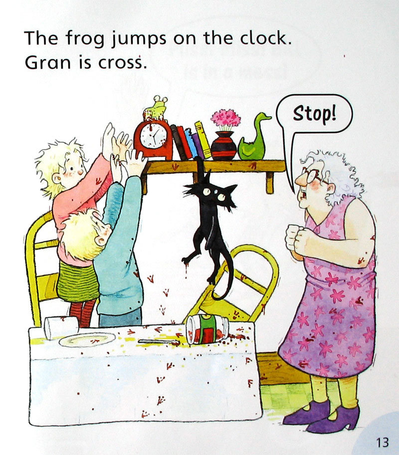 The twins bring a frog to visit Gran... havoc ensues! A stage 3 Phonics book to help young children with new words and language.