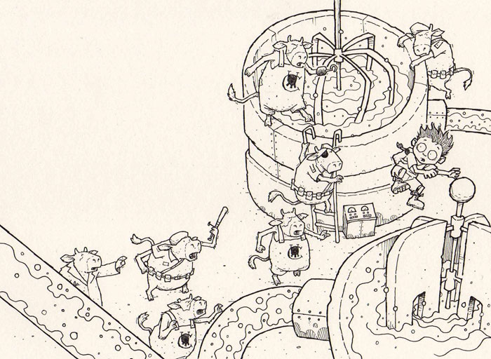 Hal and his fat dog Rufus set off on a mission to solve the mystery of the cheesemares once and for all, but will they ever escape from the horrors that await them in The Evil House of Cheese and from the grasp of Contessa Von Udderstein?