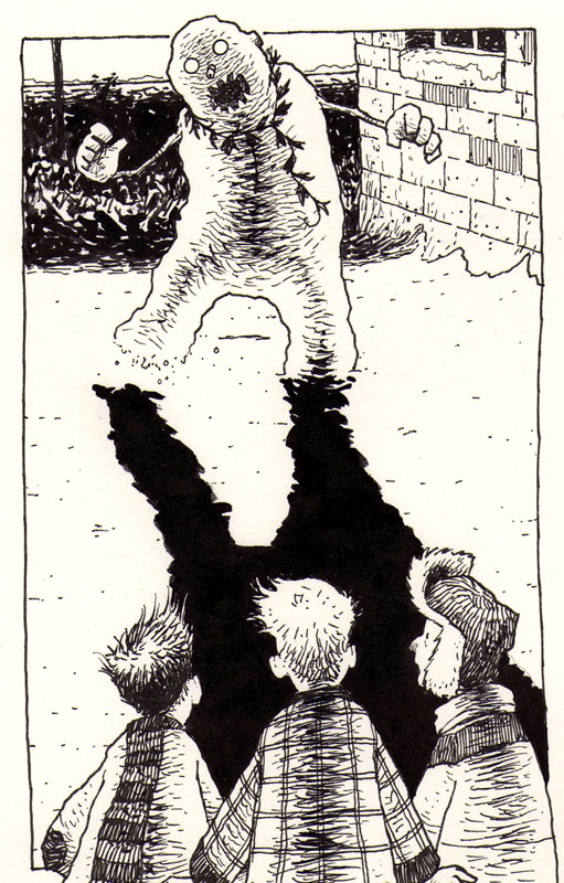 Eyes from light bulbs. A nose from a broken bottle. Teeth from bits of glass...
